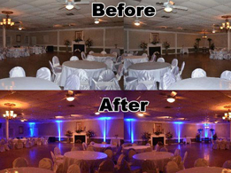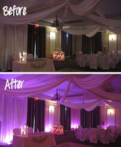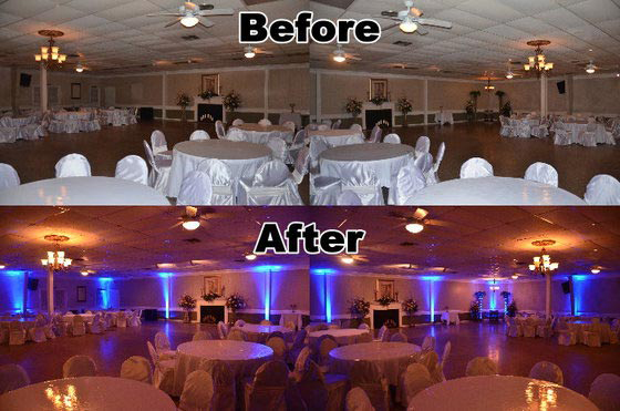 Have you ever seen uplighting at an event ? It can transfer your room into an experience your guests will not soon forget, Lighting is the most affordable way to completely change the Atmosphere of any room.